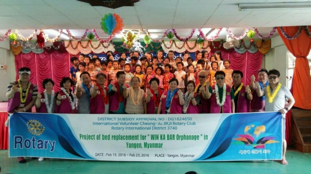 국제로타리 3740지구 5지역 청주 직지로타리 회장(대열 김완수)과 회원 15명이 지난 2월 19일부터 23일까지 4박5일간의 일정으로 미얀마 양곤 내 위치한 “윈 카바(WIN KA BAR) 고아원”의 침대받침 및 메트리스를 교체하는 지구보조금 국제봉사 사업을 위해 미얀마를 방문해 봉사한 사실이 알려져 화제다.