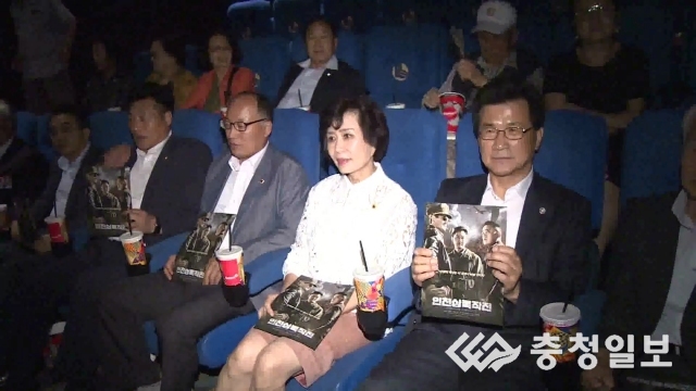 이 지사의 영화 관람에는 보훈단체장 7명과 여성 참전 유공자 5명 등 40명이 초청됐으며 충북도의회 김양희 의장도 자리를 함께 했습니다.