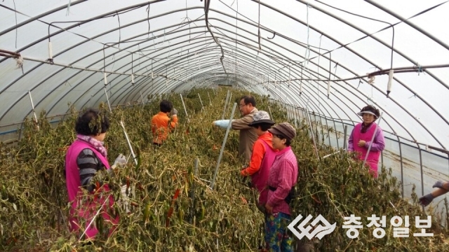 이날 일손돕기는 고추따기와 비닐하우스 폐비닐 제거 등으로 이뤄졌으며, 많은 인원이 함께해 금새 고추 포대를 가득 채우는 등 일손돕기가 원활하게 실시됐다.