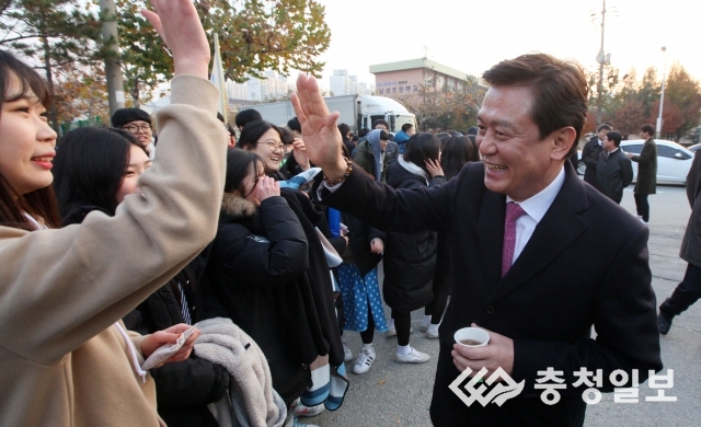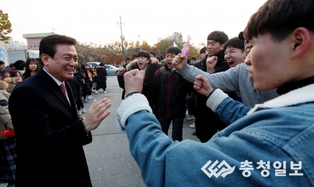 2017학년도 대학수학능력시험이 실시된 17일 충북고 정문 앞에서 김병우 충북도교육감이 응원나온 재학생들을 격려하고 있다./임동빈기자 관련기사 수능 작년보다 어려웠다 임동빈 기자 biniphoto@naver.com 다른기사 보기 저작권자 © 충청일보 무단전재 및 재배포 금지 당신만 안 본 뉴스 충청내륙고속화도로 12월 완전 개통... 충북 반나절 생활권 대전 도시정책, 설계부터 다시 짚어야 청주 산업지형 ‘대전환’…떠나는 분리막, 들어오는 HBM 세종지역 아파트 공급 가뭄 해소되나 대통령실·민주당, '행정수도 세종시 이전' 정책 본격 추진 나서 진천군수 선거 본격 점화···여야 6명 ‘무주공산’ 놓고 각축 “문 닫는 가게가 더 많다”…충북 자영업 폐업, 올해 벌써 지난해 추월 충청내륙고속화도로 12월 완전 개통... 충북 반나절 생활권 댓글삭제 삭제한 댓글은 다시 복구할 수 없습니다. 그래도 삭제하시겠습니까? 비밀번호 닫기 기사 댓글 0 댓글 접기 로그인 후 이용 가능합니다. 댓글 내용입력 비회원 로그인 이름 비밀번호 댓글 내용입력 댓글쓰기 계정을 선택하시면 로그인·계정인증을 통해 댓글을 남기실 수 있습니다. 회원 로그인 비회원 글쓰기 이름 비밀번호 자동등록방지 로그인 옵션 창닫기 주요기사 3분기 카드 해외사용 59억달러… 사상 최대 기록 충북 소비자심리지수 116.8… 2010년 이후 최고치 기록 충북도, 'AI 페스타 2025'로 AX 혁신거점 도약 청년 취업난에 직업계고 졸업생 절반은 대학 진학 청주서 수년 만에 출현한 바바리맨, 경찰 검거 기온 변동성 큰 이번 겨울, 짧고 간헐적 추위 찾아와