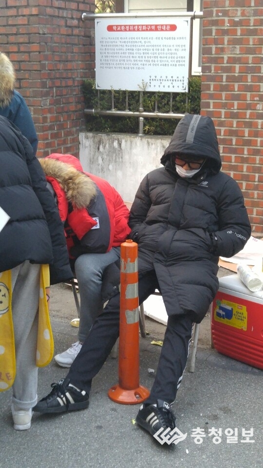 [충청일보 오태경기자] ○…청주 상당고에서는 수험생을 응원하는 후배들의 열기가 뜨거운 가운데 의자에 앉아 세상 모르고 잠든 학생들이 있어 눈길.