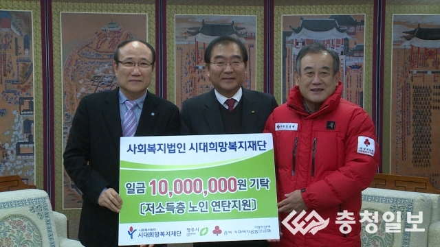 시대희망복지재단 양정모 대표는 청주지역 저소득 노인 가정에 연탄을 지원해 달라며 1000만원을 전달했습니다.