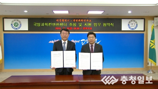대전시는 9일 시청에서 국방과학연구소와 'ADD 국방과학컨벤션센터(가칭) 조성 및 지원 업무협약(MOU)'을 맺었습니다.