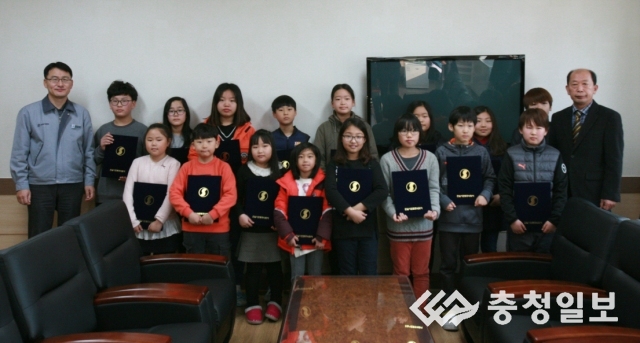 한일시멘트는 지난 9일 매포초등학교 학생 17명과 매포중학교학생 7명 등 모두 24명에게 700만원의 장학금과 장학증서를 전달했다.