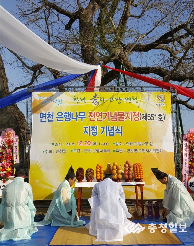 당진시 면천면 성상리 옛 면천초등학교에 있는 면천은행나무는 이번 기념식에 앞서 지난 9월 6일 문화재청으로부터 국가천연기념물 551호로 지정됐다.