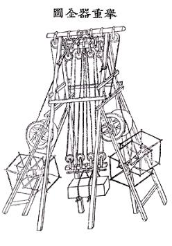 하지만 선학인 정약용선생은 '정다산전서(丁茶山全書)'-(기중도설)起重圖說'에서 상하 4개씩의 도르래를 사용하면 전체로 25배의 힘을 낸다고 적고 있다. 또한'화성성역의궤'의 기록에는 화성을 쌓을 때 좌우 각각 15명의 남자들이 1만 2000근(7200㎏)의 돌을 들어 올릴 수 있어서 한 사람이 400근(240㎏)의 무게를 들어 올릴 수 있었다고 하여 실제 사용에는 약간의 차이가 남는다. 이렇게 정약용과 현대의 계산법이 차이가 나는 이유는 무엇일까?