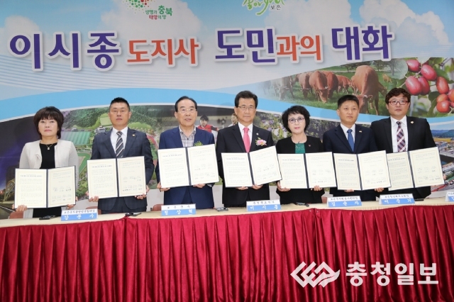 한편 이날 이시종 지사는 보은군민 200여명을 초청 대화에 나서 도정운영의 방향을 설명하고 주민들로부터 차정리와 동정리,달천리,고석리 교량설치공사 및 달천 하천정비와 수정교량공사 등 지역현안을 건의 받았다. 또 도민과의 대화에 앞서 인성피앤시㈜ 이승인 대표이사와 보은라이온스클럽 안광용 회장이 도정발전유공자 표창을 받았으며 '미래로 향하는 충북, 세계 속의 충북' 실현을 위해 충북도와 보은군, 유관단체 간 실천 협약식이 마련됐다.