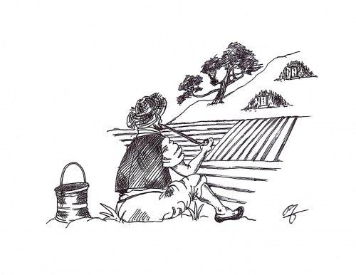 박평래는 빈 똥장군을 지게에 얹어 놓은 후에야 비로소 풀밭에 퍼질러 앉았다. 주머니에서 쌈지를 꺼내 엽연초를 가루 내어 대통에 담으며 눈앞으로 푸르게 펼쳐지는 솔밭을 바라본다.