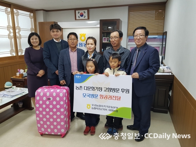 [옥천=충청일보 이능희기자] 충북농협 옥천군지부와 이원농협, 농협 충북지역본부는 지난 26일 이원농협 조합장실에서 베트남 출신 이하나씨(31) 가족을 초청해 모국 방문 왕복항공권과 체재비를 지원했다.