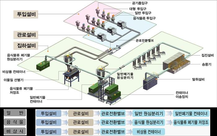 재활용폐기물을 제외한 일반폐기물과 음식물쓰레기는 관로를 통해 '자동크린넷'이라는 집하장으로 운반된다.