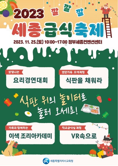 세종시교육청이 11월 25일 정부세종컨벤션센터 2층 기획전시장에서 '2023. 깔깔깔 세종급식 축제 한마당'을 개최한다.