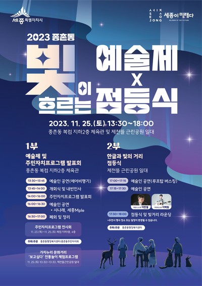 세종시 종촌동이 11월 25일 '2023 종촌동 빛이 흐르는 예술제·점등식'을 개최한다.