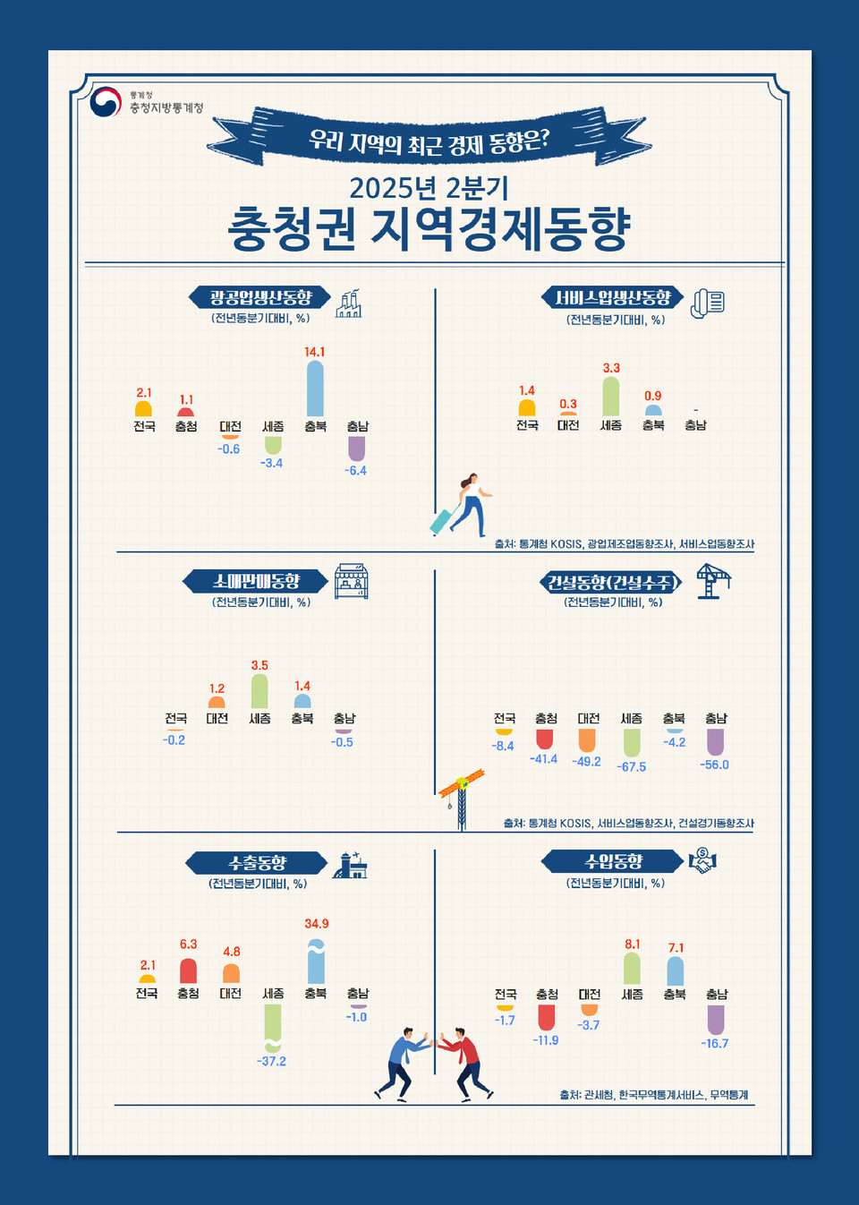 충청권의 2025년 2분기 경제가 수출과 고용에서 개선세를 보인 반면 건설과 일부 제조업 부문은 부진을 면치 못한 것으로 나타났다.