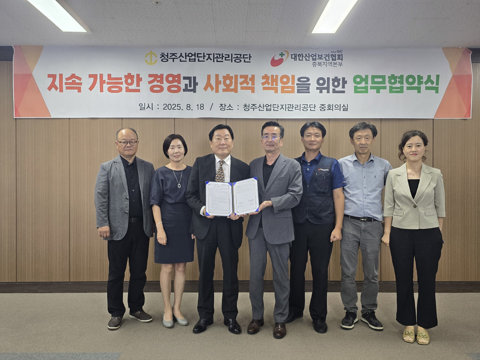 청주산업단지관리공단과 대한산업보건협회 충북지역본부는 18일 ESG 경영 원칙을 공유하고 사회적 책임을 강화하기 위한 업무협약을 체결했다.