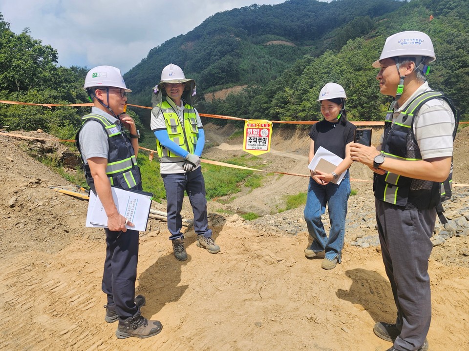 한국농어촌공사 충북지역본부는 지난 22일 율산지구 자연재해위험개선지구 정비사업 공사현장을 방문해 폭염 기간 온열질환 예방을 위한 안전 점검을 했다.