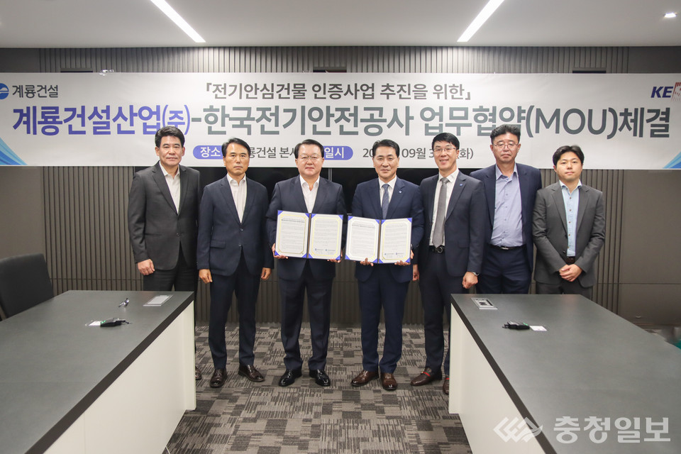 계룡건설은 9월 30일 대전 본사에서 한국전기안전공사와 '전기안심(건물) 인증' 업무협약을 체결했다.