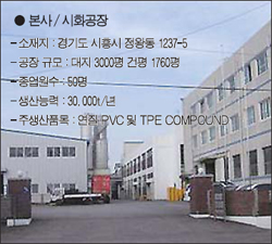 현재 경기도 시화에 본사와 공장을 두고 있으며 안산에도 공장을 가동하고 있다.