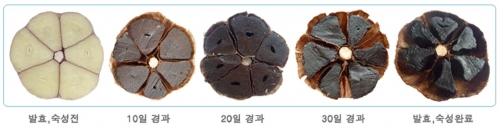 하얀 생마늘이 발효 숙성되면서 색깔이 검은색이 되는데 색상이 변한다는 것은 성분의 변화가 일어난다는 것을 의미한다. 마늘을 장기간 발효 숙성시키면 s-아릴시스틴이라는 마늘의 특수한 물질의 생성되는데, 이것을 섭취할 경우 인해 체내 흡수율이 좋아 건강에 탁월한 도움을 준다.