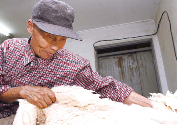 최옹는 "예전에는 하루에 60kg 정도 솜을 틀었으나 요즘에는 거의 찾아 오는 사람이 없다"며 "자원의 귀함을 모르고 멀쩡한 솜들을 그냥 버리고 새이불을 사는 세태가 매우 안타깝다"고 했다. /이영헌기자 smeyes@