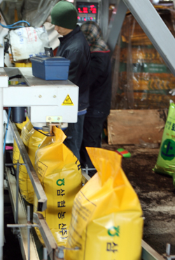 특히 기존 20㎏ 단일포장을 500㎏, 700㎏, 800㎏ 등으로 다양화? 대형화하는 대형톤백제품을 생산함으로써 공급가를 6% 인하, 조합원들에게 양질의 퇴비를 보다 저렴하게 공급할 예정이다. /이성아기자 yisunga@