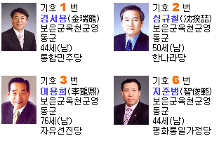 이 가운데 16대의원인 심 후보와 17대의원인 이용희 후보의 재 대결이 커다란 관심을 보이고 뒤를 이어 통합민주당 김서용후보의 출사로 인한 표분산이 확연히 드러나고 있다.