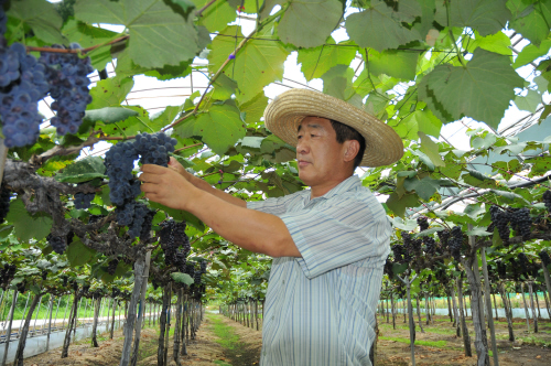 | 옥천군 서대리 박찬용씨는 친환경재배기술을 이용해 생산한 포도로 웰빙시대 소비자들의 요구에 부응해 나가고 있다. |