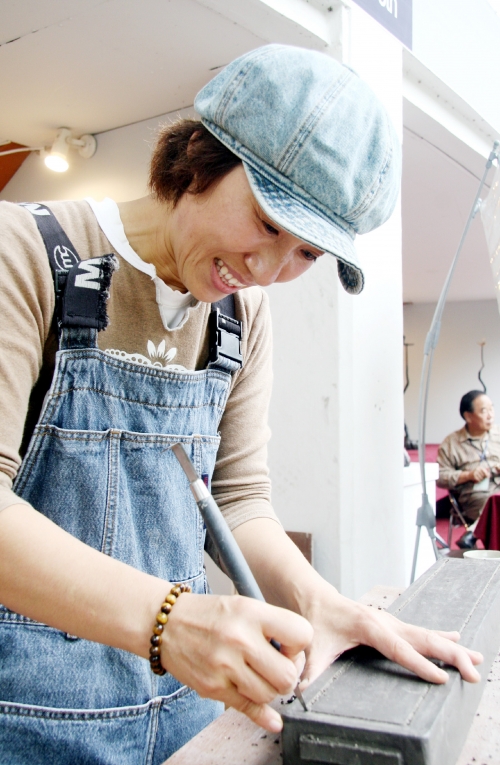 도예가 천미선씨(44·사진)는 여성 특유의 민감함으로 찻상을 만들고 있는 젊은작가다. 청원군 오창읍 석우리에 ‘미선공방’을 운영하고 있는 작가는 흙으로 찻상을 빚는다. 물레기법으로 찻상을 만드는 작가는 국내에 여럿 있지만 물레를 전혀 사용하지 않고 손으로 두드려서 찻상을 만드는 작가는 거의 없다. 이 때문에 지난 10월 서울의 가나아트스페이스에서 열린 ‘천미선 휴(休) 찻상전’에서는 다인(茶人)들의 발길로 문전성시를 이루었다.