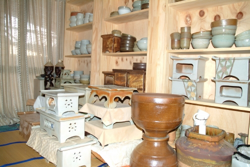 찻상, 다완, 다기세트 모두 작가가 손수 제작한 것들이다. 굳이 작가의 것이 아닌 게 있다면 녹차나 보이차일 것이다. 차를 마시는 사람들은 작가의 따뜻함과 작품에서 풍기는 넉넉함, 그리고 그윽한 차 맛에 시간가는 줄 모른다.